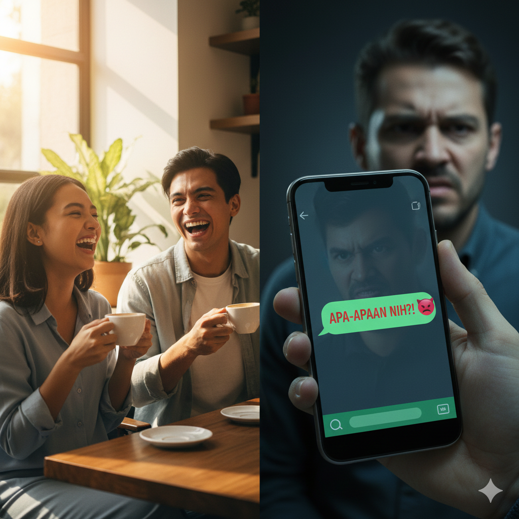 Pernahkah Anda merasa ragu atau bahkan takut untuk membalas candaan di grup WhatsApp?Fenomena ini cukup unik: seseorang yang sangat hangat dan humoris saat bertemu langsung, tiba-tiba bisa menjadi sangat kaku,